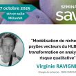 Le mardi 7 octobre 2025 à 11h, vous êtes tous conviés au séminaire de notre invitée Virginie Ravigné, chargée de recherche au CIRAD ( UMR PHIM). La présentation aura lieu en salle Millardet.